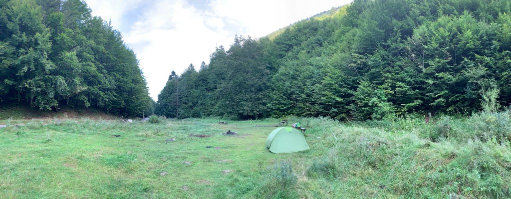 Pregătiți cu cort, saci de dormit, mâncare pe două zile și mult entuziasm, am plecat în Poiana Mărului, sperând să o inițiem pe E. în ale campatului.